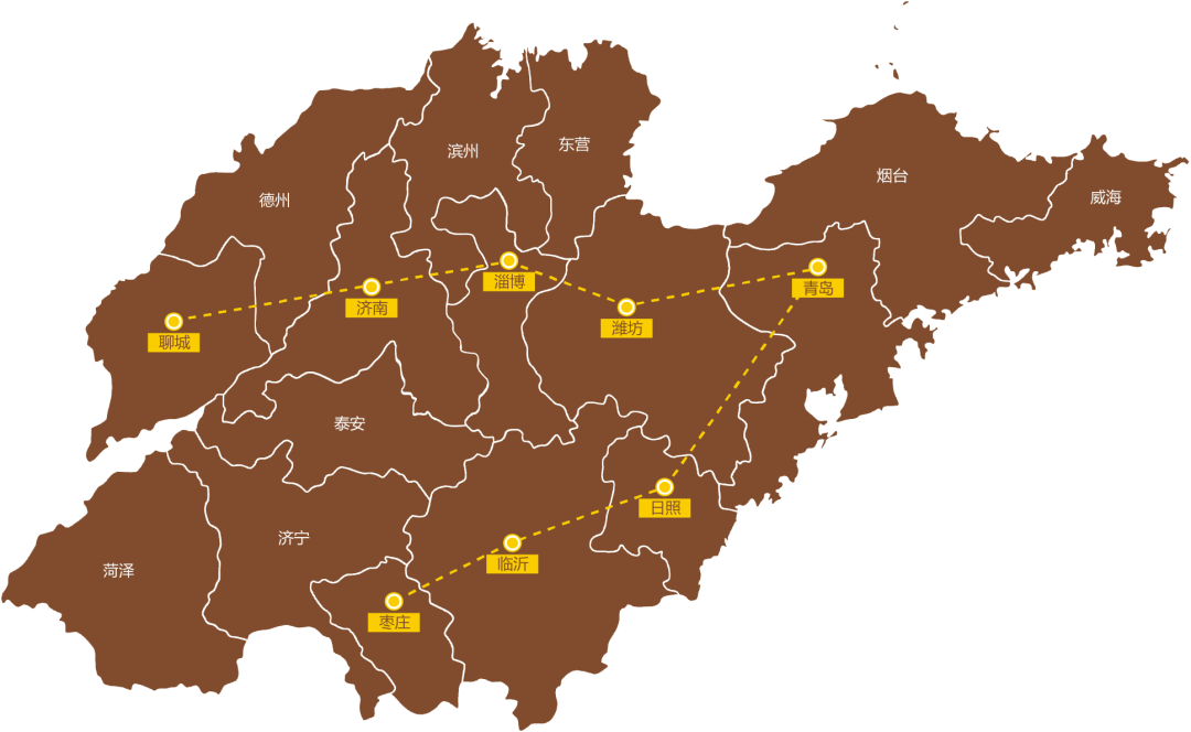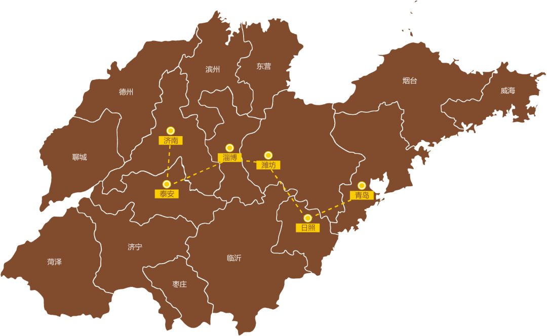 长清——肥城——岱岳——章丘——莱芜——博山——沂源——临朐——沂水——五莲——黄岛