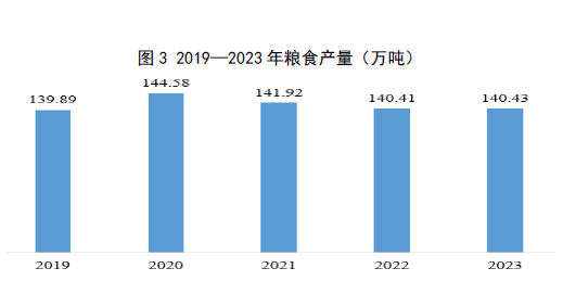 全年粮食产量140.43万吨,连续四年稳定在140万吨以上。其中,夏粮产量69.64万吨,秋粮产量70.79万吨。园林水果产量105.03万吨,增长0.6%;肉类产量5.16万吨,增长1.2%;牛奶产量8.29万吨,下降3.1%;禽蛋产量4.88万吨,增长3.4%。