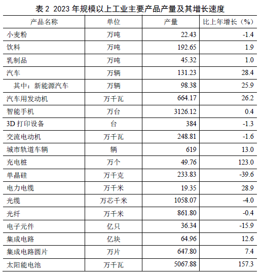 全年规模以上工业中,医药制造业总产值增长7.8%,通用设备制造业下降2.3%,汽车制造业增长32.4%,铁路、船舶、航空航天和其他运输设备制造业增长10.5%,电气机械和器材制造业下降14.8%,计算机、通信和其他电子设备制造业增长5.9%,仪器仪表制造业增长23.4%,电力、热力生产和供应业增长4.2%。