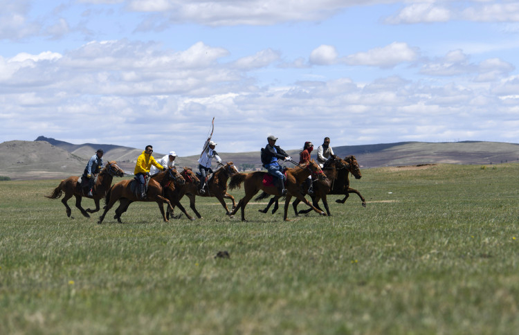 ↑ 丰宁满族自治县坝上草原,游客在骑马游玩。新华社发(王立群摄)