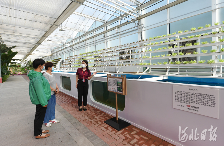 ↑ 在塔元庄同福乡村振兴示范园的智慧农场,工作人员为游客进行讲解。河北日报记者史晟全摄