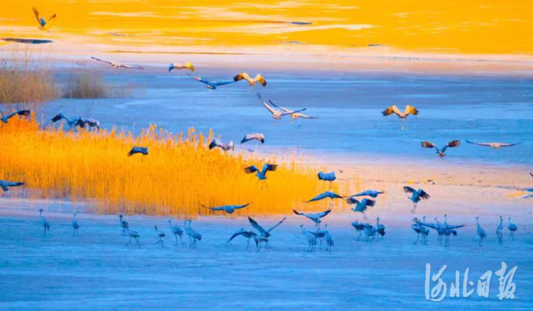 ↑ 滦河湿地吸引大量灰鹤来“打卡”。河北日报通讯员李少华摄