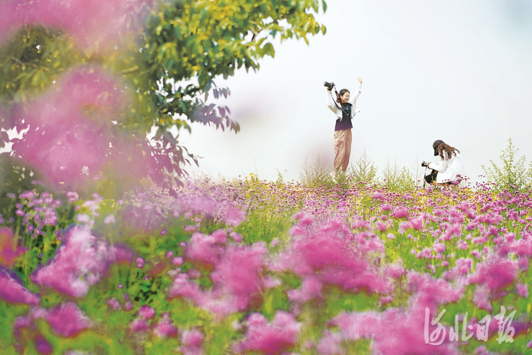 游客在扁鹊药谷花海拍照、游玩。河北日报通讯员刘继东摄