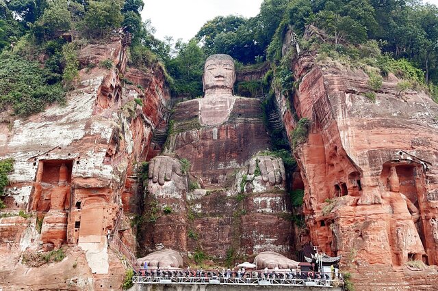四川乐山大佛景区是世界文化与自然双遗产,闻名遐迩的旅游胜地,也是来四川一定要去游玩的景点。乐山大佛景区面积18平方公里,由乐山大佛、凌云山、麻浩岩墓、乌尤山、巨形卧佛等组成。乐山大佛开凿于713年,高71米,头高14.7米,脚背宽8.5米,脚面可围坐百人以上,头与山齐,足踏大江,双手抚膝,神势肃穆,是唐代摩崖造像艺术的精品,堪称人类艺术一大瑰宝。买购网编辑推荐观赏大佛的最好的方式就是走楼梯到凌云寺,从九曲栈道由大佛的头部往下走,到大佛脚部时拍拍照留念,然后再走上去。 【 详细>>】