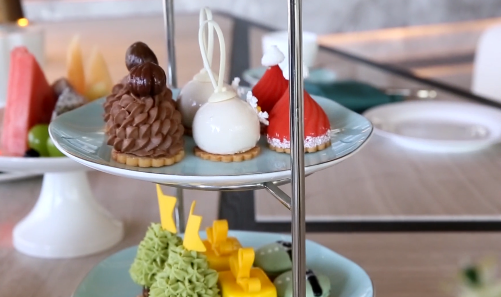 北控雁栖岛酒店度假村管理有限公司总经理刘晓风介绍起了饭店为新年设计的特色下午茶,司康、小蛋糕、马卡龙……赏湖景的同时享受下午茶,真是别有一番风味!