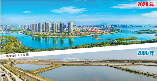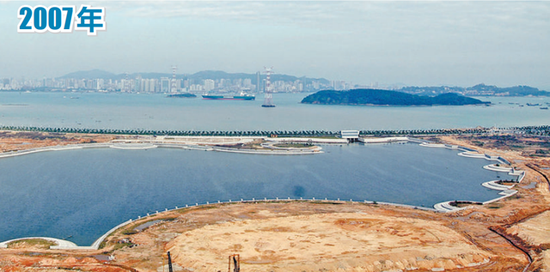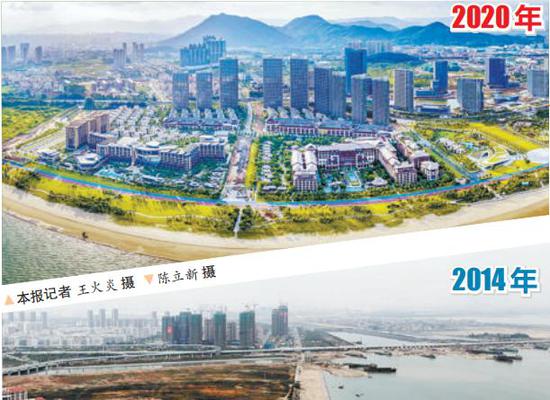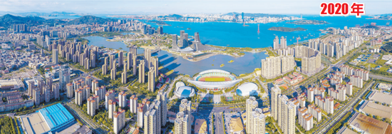 当年的荒滩已蝶变为风光秀丽、活力四射的环东海域新城。
