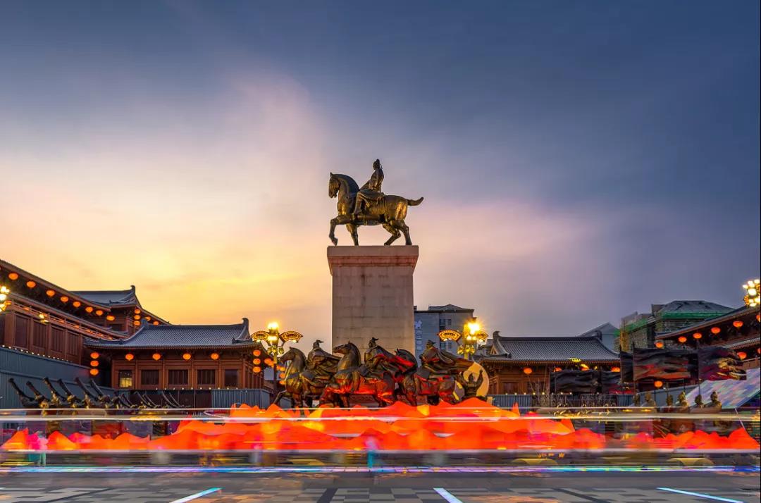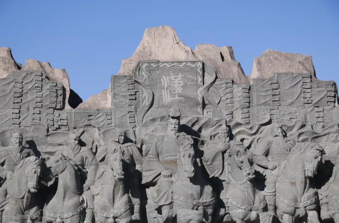 汉武大帝雕像前方还有许多将军士兵铜像,骑着马,驾着撵,这是去“泰山封禅”。在前面的石碑上也刻了泰山封禅的含义,大体讲解封禅是古代帝王祭天地,祈愿国泰民安的大型典礼。在当时这样的祭天大典一定非常壮观!