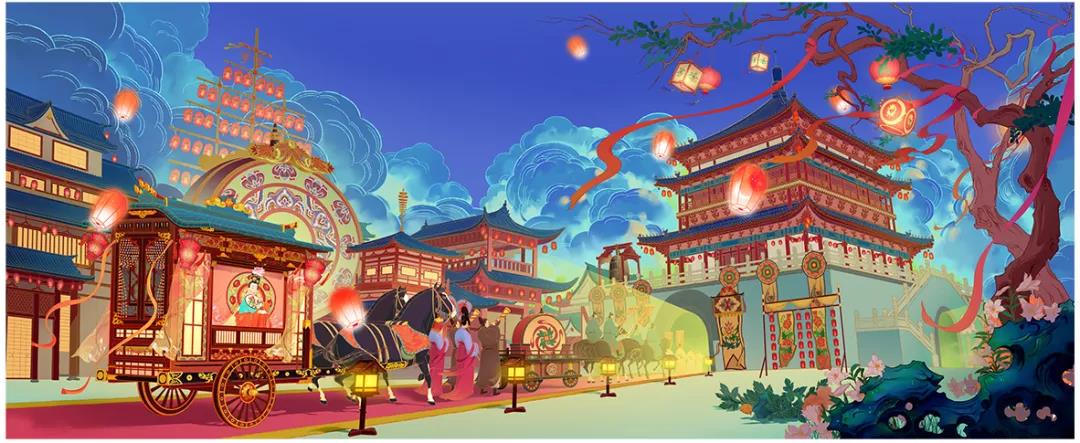 你们看,眼前这个高大的门就是大明宫的标志性建筑——丹凤门。走进丹凤门就是宽阔的御道,过节时,这里会有很多节目,非常热闹。