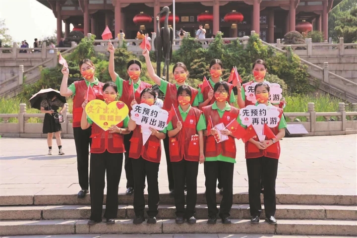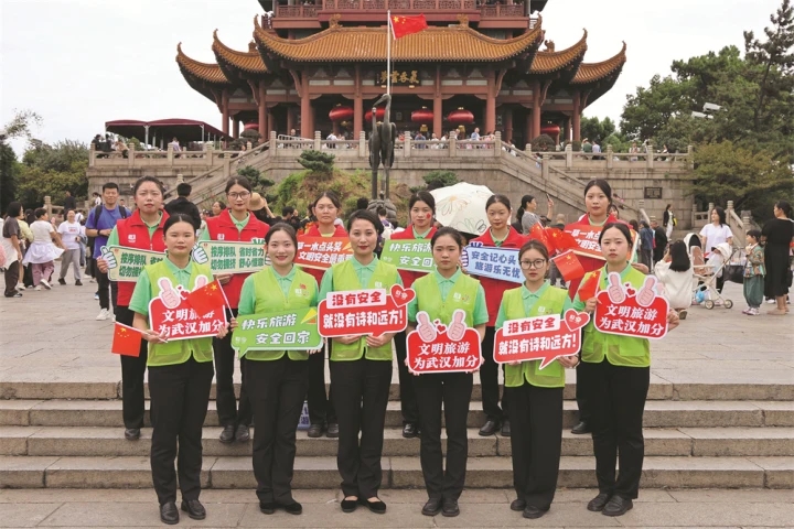 今年8月10日,一群江苏游客在武汉导游易梦霞的带领下,参观了湖北省博物馆。当时正逢暑期旅游旺季,博物馆内游客众多,易梦霞为游客配上了耳麦,并随时提醒“有序排队入场”“不要大声喧哗”。江苏游客感叹:“导游热情地为我们服务,细心提醒我们注意事项,文明旅游我们玩得更开心了。”武汉市旅游行业持续推进“武汉以我为荣”文明素养提升行动,多家旅行社开启“文明旅游进景区”活动,通过“行前一课”“导游宣讲”等形式,引导市民、游客成为文明旅游理念的践行者、传播者。
