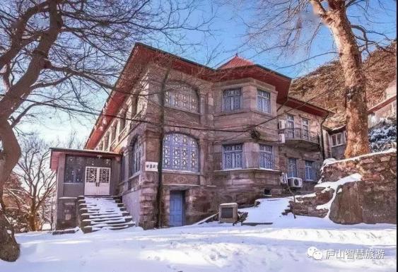 沿着芦林湖往上走便能看到美庐别墅了,作为庐山上一座有英国风格的独栋建筑,四周被银装素裹的别墅群围绕,就好似走进了冰雪世界般,简直就是视觉暴击。