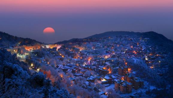 庐山上一座神秘的小镇,隐匿在冰雪世界中的它,更像是一个琉璃世界。牯岭镇的夜也很值得慢慢逛逛走走,走在街心公园旁还能看到山下的星星点点,吹着习习晚风,真的是再舒服惬意不过了!