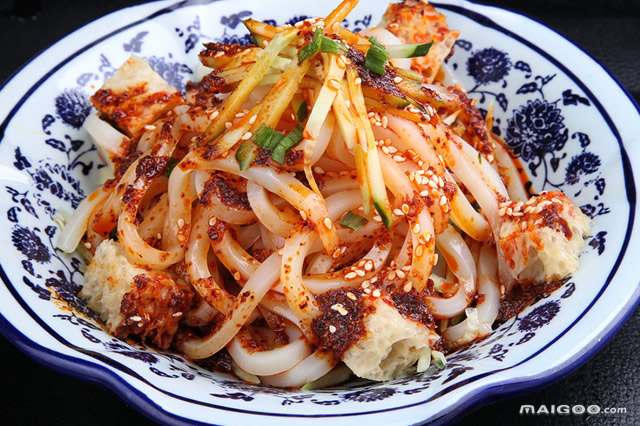 羊肠面是青海西宁比较具有代表性的传统小吃,因吃的时候手抓起面放在碗里,被人们形象地称为抓面,也是青海著名的面食小吃。羊肠面是以羊肠为主料,并伴以热汤切面共食,有两种做工相当细致的食材,即肉肠和面肠,其关键在羊肠,肉肠是取羊肉、羊杂剁碎后装入羊肠中,再入水煮熟;面肠则是将豆面加水制成糊状,灌入羊肠之中。两种羊肠制好后,再加调料干炒,干炒过的羊肠外焦里嫩,香味诱人,让人垂涎欲滴。MAIgoo小编推荐西宁其他特色小吃:殷凉粉、筏子肉团、余酿皮、五香牛肉干等。 【 详细>>】