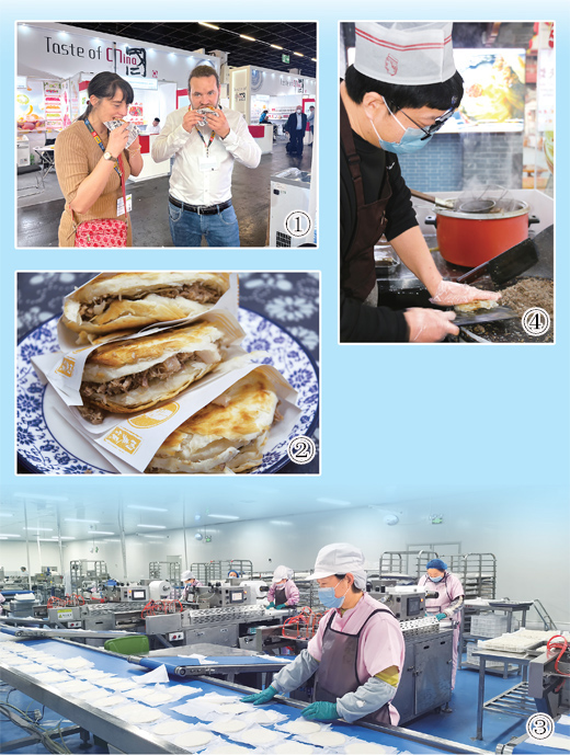 图①:在德国科隆世界食品博览会上,潼关肉夹馍受到青睐。