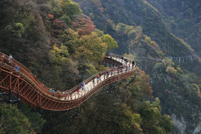 秦岭旅游景点有哪些?秦岭江山景区直接坐落在秦岭山脉的腹地,是秦岭山脉自然景观的重要组成部分。景区内有江山玻璃吊桥、四皓隐居地、斗槽飞瀑、原始部落、海石芽等50多个景点,景区规划面积2416公顷,森林面积2198公顷,森林覆盖率达91%,平均海拔986米,是秦岭地区罕见的海石芽地质构造。景区内山清水秀,森林茂密,原生态的山、水、石、林、洞、潭、溪、瀑等自然景观随处可见。 【 详细>>】