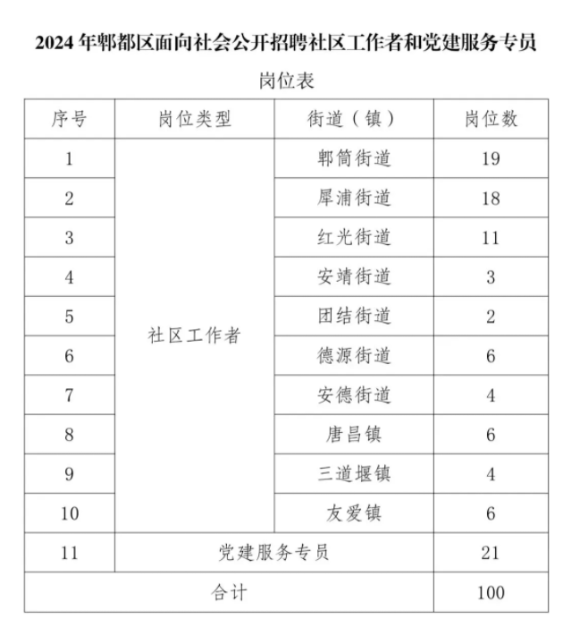 本次采取网上投递简历方式报名。通过登录成都人才网(),点击首页“人事招考”栏,进入“2024年郫都区面向社会公开招聘社区工作者和党建服务专员”,按照网络提示进行注册、投递简历报名。每人限投一个岗位,重复投递将视为无效报名。