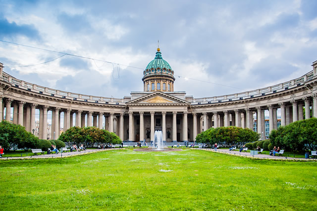 喀山大教堂位于俄罗斯圣彼得堡的涅瓦大街上,是一座具有重要历史和文化意义的建筑。这座教堂最初是为了存放俄罗斯东正教的重要圣物——喀山上帝之母圣像而建造的,因此得名。喀山大教堂的建筑风格融合了俄罗斯民族风格和拜占庭风格的元素,使其成为一个独特而美丽的地标。教堂的中央穹顶高达78米,是教堂内最引人注目的特色之一。同时,游客还可以在教堂周围的广场上欣赏到美丽的喷泉和雕塑。 【 详细>>】