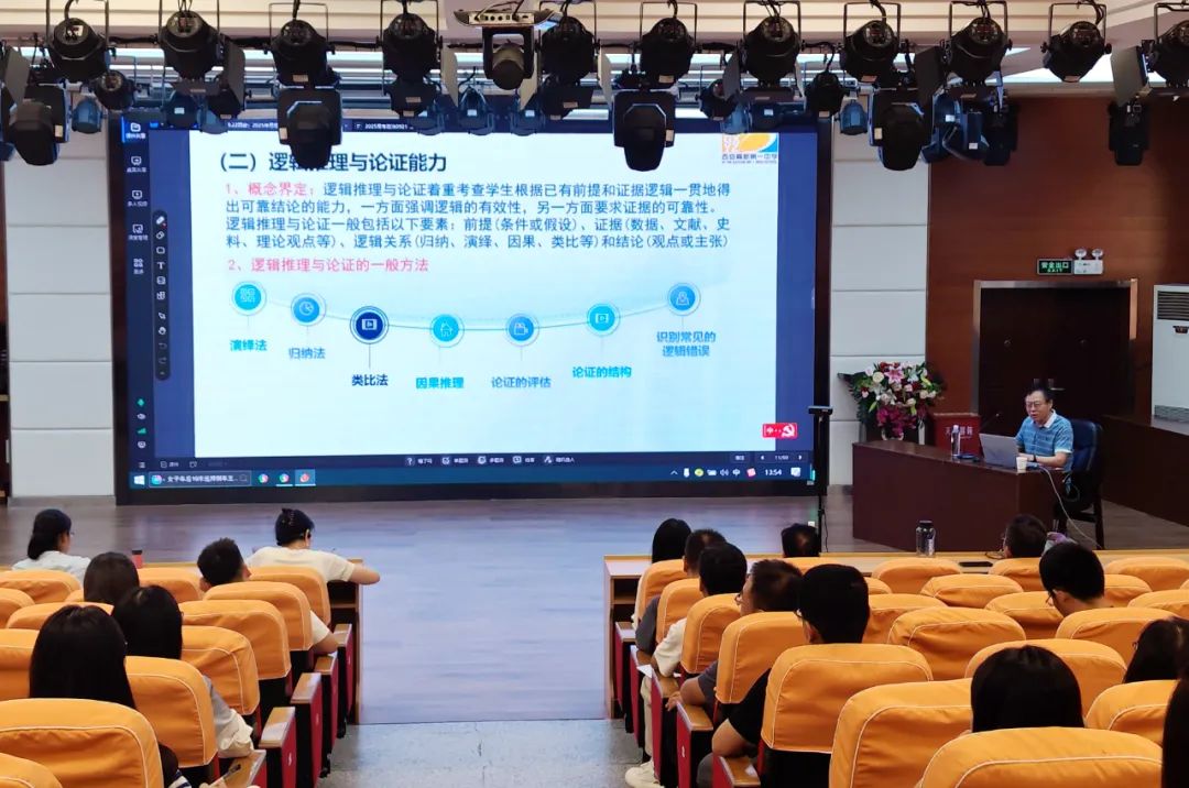 研讨会上,宝鸡中学王文军老师进行了“基于2025年新高考的备考策略及教学建议”的主题分享。王老师分析了2024年全国各地高考试题的变化,应时代发展的要求,特别就解题思维和方法进行了深入剖析与点拨。王老师强调一轮复习应注重基础知识的巩固与拓展,自建知识体系,加强对重点知识的精准记忆,为后续的专题复习和模拟练习打下坚实的基础。