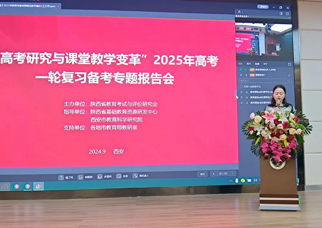 2025新高考即将来临,为准确把握2025新高考命题趋势,增强优质教育资源的精准服务,引领新高考下高中课堂教学变革和学习方式变革,促进名师、专家对高考探索研究成果的交流与共享,由陕西省教育考试与评价研究会主办的“‘高考研究与课堂教学变革’2025年高考一轮复习备考专题报告会”思想政治学科复习备考研讨会,于2024年9月21日在西安锦园中学顺利召开。