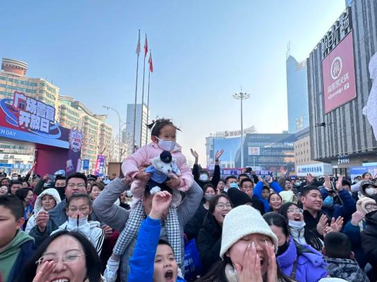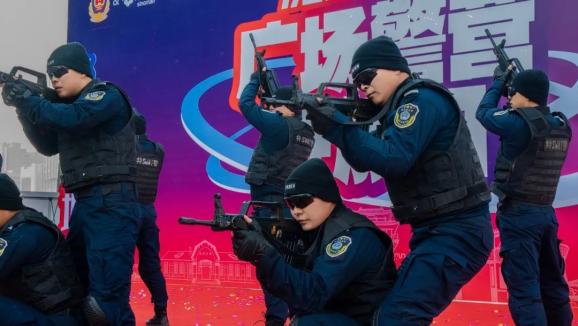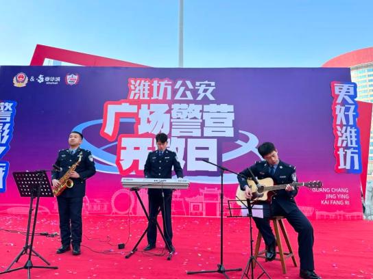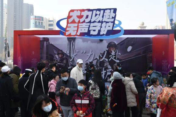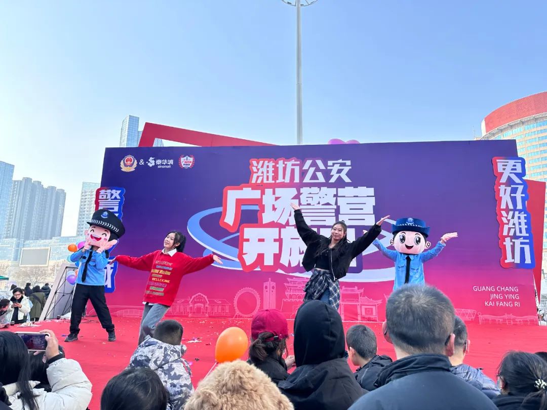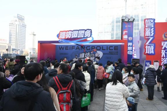 1月5日上午9时30分,潍坊泰华城· 假日广场北门旌旗猎猎、人流如织,“警彩之城,更好潍坊”的宣传标语随处可见,点缀着热闹氛围。
