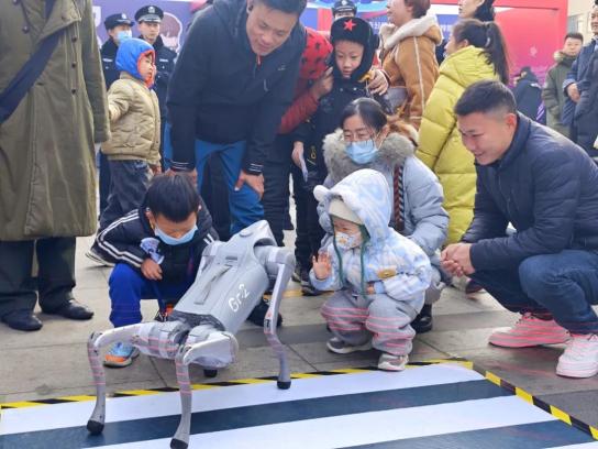 以往每届广场警营开放日,警犬都是独一无二的热点。本届广场警营开放日,潍坊市公安局信息通信处的“电子警犬”更是大放异彩。活动现场,“电子警犬”根据指令依次完成翻滚、招手、作揖、坐立等动作,一举成为全场焦点。而作为警犬界的“钢铁侠”,它在警务实战中的作用也不容小觑。据了解,“电子警犬”能在各种复杂环境下出入自如,搭载传感器能够实现数据回传,为公安机关处置特殊警情提供支撑。