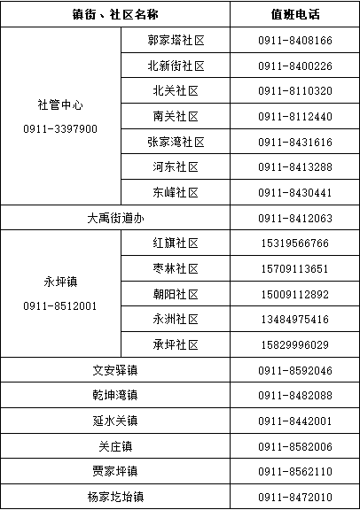 延川县各镇街、社区联系电话
