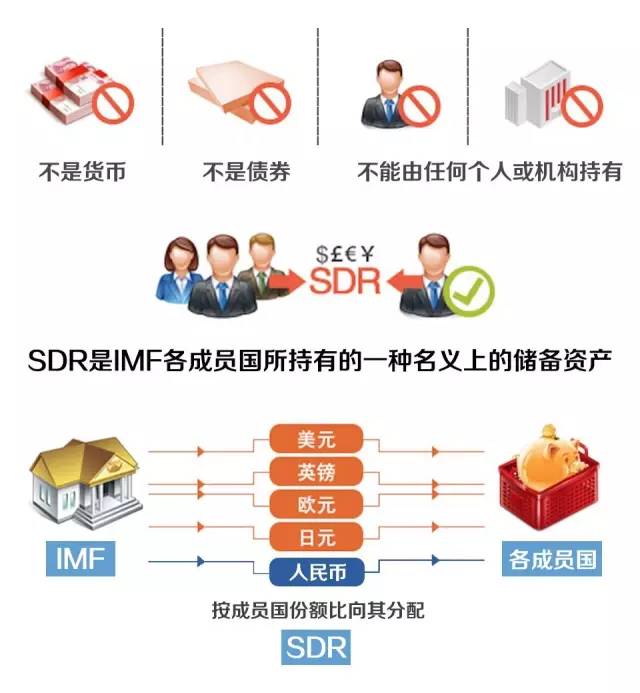 SDR即special drawing right,特别提款权,它是国际货币基金组织于1969年创造的一种用于补充成员国官方储备的国际储备资产。虽然是资产,但却找不到任何一张面值的SDR货币,它只是一种记账单位。