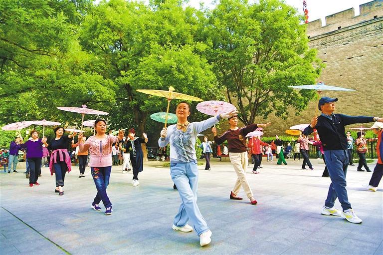 看人文。欲观陕地人文,可觅之于浩如繁星的文物文化遗存,及相继崛起之各类创意文化街区等。到处人文盛,市井烟火浓。即以建国门老菜场市井文化创意街区所摄图为例,一对武生武旦正全神贯注“对花枪”,雉尾抖擞,战袍翻飞,观者似皆凝神屏息,沉浸式领略这传统文化的至深魅力。举凡唱念做打,亦是演绎世情,且为烟火市井平添韵致几许。今年“五一”期间,袁家村几为人潮所淹,大美乡村,飞歌正酣。于环城公园中锻炼者,亦是陕人从容自在状态之一种。若观人文,必言兵马俑,诸俑成形迄今已两千余载,其军阵之严整,“老秦人”之庄重肃穆,非亲见而不能深感。尚须提及者,以永宁门为注目点之鸟瞰图,城墙雉堞向两端延伸如玉臂轻舒,将偌大一座长安城柔情护绕,俯察又如飞机之振翼待飞,新时代秦人之精神风貌,或亦如图所昭示般踔厉奋发、勇毅前行。