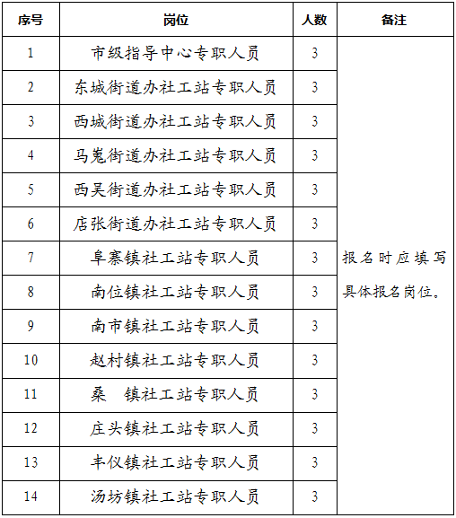 兴平市各镇(街道)社工站专职工作人员42名,具体岗位及名额分布如下: