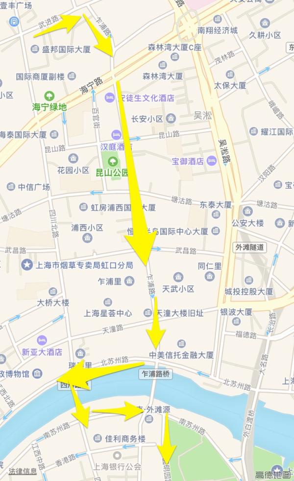 路线概览:四川北路武进路-乍浦路-河滨大楼-光陆大楼