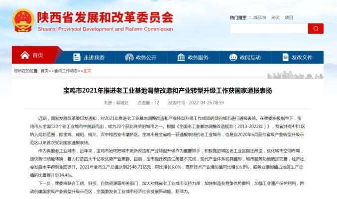 近年来,宝鸡市始终把城市更新改造和产业转型升级作为重要抓手,积极推进城区老工业区搬迁改造,优化城市空间布局,加快新旧动能转换,着力打造四大千亿级优势产业集群。目前,全市搬迁改造任务基本完成,现代产业体系初具雏形,城市服务功能更加完善,经济社会发展水平得到全面提升。
