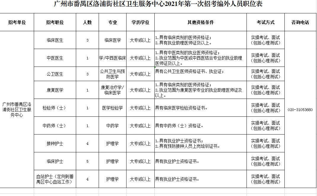 2.其他条件(详见《广州市番禺区洛浦街社区卫生服务中心第一次招考编外人员职位表》)。