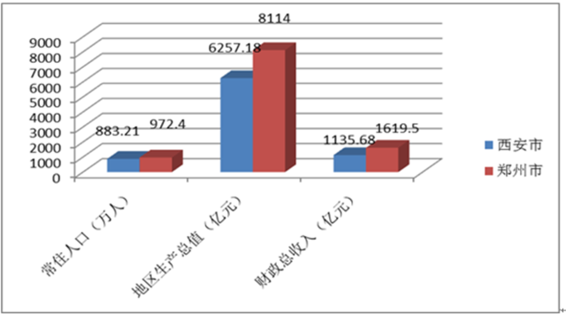从基础资源看,郑州略强。2016年,郑州地区国内生产总值8114亿元,是西安的1.3倍;人均生产总值84114元,是西安的1.2倍;地区财政总收入1619.5亿元,是西安的1.4倍,地方财政一般公共预算收入1011.2亿元,是西安的1.7倍,其中:税收收入723.3亿元,是西安的2倍。从临空经济发展的基础资源看,郑州从人口、经济发展方面比西安有优势,但两地间的差距不大,但郑州市的财政方面的优势较大。