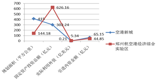 从发展情况来看,2016年,郑州航空港经济综合实验区实现生产总值622.5亿元,同比增长13%;园区进驻企业1531个,同比增长55.7%;郑州航空港经济综合实验区生产总值占郑州市GDP的比重达到7.7%,成为带动郑州经济发展的强劲动力。空港新城目前统计数据不全。根据已获得的资料,2016年,空港新城固定资产投资总额为302.24亿元,仅相当于郑州的48.3%;实际利用外资2050万美元,仅相当于郑州的4%;引进内资金额65.15亿元,是郑州的1.5倍。