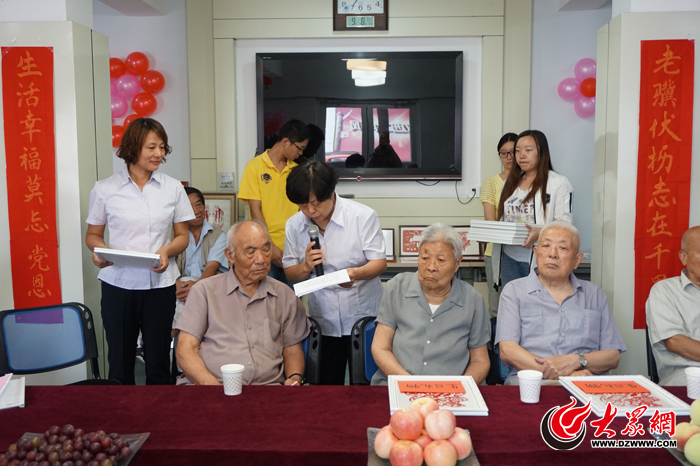 2015年9月9日,陈叶翠为老党员过生日送礼物(吴文峰 摄)