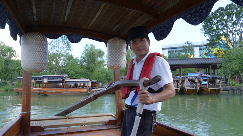 “摇橹是一门技术活,年轻时候练出来的童子功,一辈子忘不了,上手很快。游客在船上总喜欢问这问那,我就跟他们闲聊,介绍自己的家乡,大家能喜欢我的家乡,我很自豪,摇起来更有劲。”叶文生说。