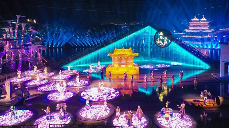夜空下惊艳亮相的《遇见·婺源》大型实景演艺更是景区的重头戏,以婺女飞天为背景,以光影、人物与山水实景为元素,以写意的戏剧手法为载体,讲述婺源本土文化故事,让人强烈感受到江西文旅新夜态之美。