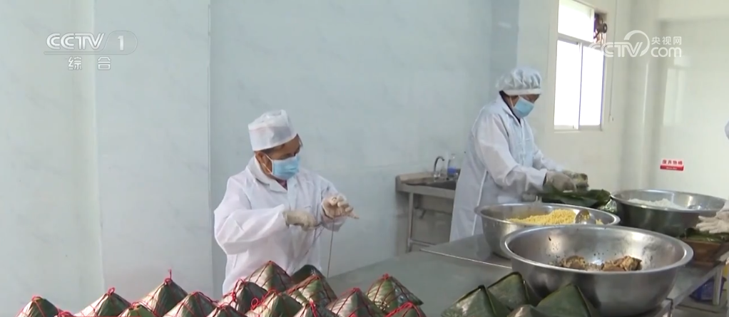 在广西宾阳,各年货加工厂抓紧时间制作“甘棠三宝”,也就是大粽、扣肉和粉利。将蒸过的粽叶摆放好,按顺序加入馅料,压实包好后,再一起放入大锅中进行熬煮,这就是大粽。将精选的五花腩肉及相关配料进行腌制、油炸,这就是扣肉。蒸熟的粉利切块,淋上花生油和酱油,加一勺酸辣酱就可享用。
