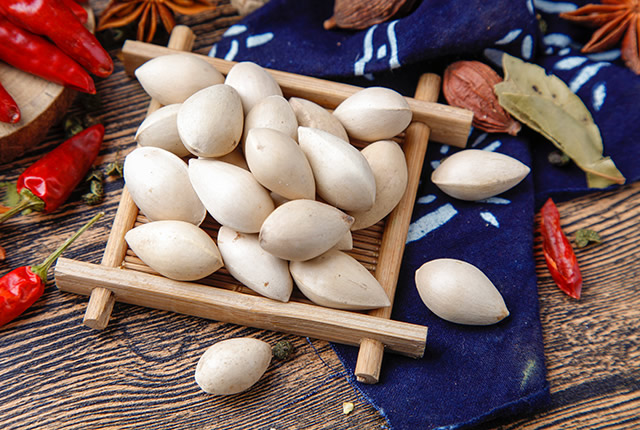 东安白果是永州特产之一,产于湖南永州东安县。东安县是农业大县,有“中国银杏之乡”的美誉,所产的白果味道鲜美,柔韧滑腻,别具风味,去本地旅游,可以买一些白果干货,带回家自己吃或者送人都很不错。白果吃法多样,生食熟食均可,生食味清香,肉脆,但内种皮难剥,吃多易中毒,因而生食很少,熟食较多,多与猪、羊、牛、及禽、蛋类食品相配,接纳炒、蒸、煨、炖、焖、烩、烧、熘等多种享饪要领,制成美味佳肴,不仅好吃,而且营养价值也很高。 【 详细>>】