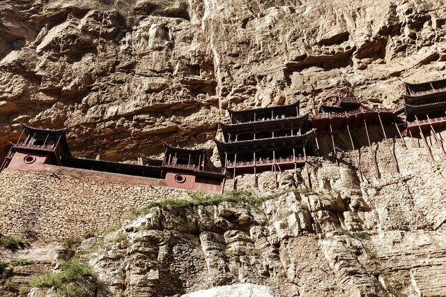 悬空寺位于山西省大同市浑源县恒山金龙峡西侧翠屏峰的峭壁间,素有“悬空寺,半天高,三根马尾空中吊”的俚语,以如临深渊的险峻而著称。建成于1400年前北魏后期,是中国仅存的佛、道、儒三教合一的独特寺庙。悬空寺原来叫“玄空阁”,“玄”取自于中国传统宗教道教教理,“空”则来源于佛教的教理,后来改名为“悬空寺”,是因为整座寺院就像悬挂在悬崖之上,在汉语中,“悬”与“玄”同音,因此得名。曾入选《时代周刊》世界十大不稳定建筑。悬空寺是山西省重点文物保护单位,恒山十八景中“第一胜景”。 【 详细>>】