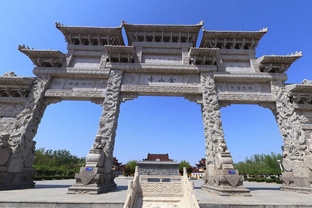 海岛金山寺,位于庆云县城北部,由一寺一街一园三部分组成,即千年古刹海岛金山寺、仿古商业街和吉祥园,占地面积约300亩,是中国北方最大的净土宗寺院,也中国北方著名的祈福旅游胜地。在整体结构上,重建的海岛金山寺延续了佛寺建筑中“伽蓝七堂”的传统布局方式。所有建筑坐北朝南,依中轴线展开,左右对称,主次分明,秩序井然。目前建成部分称婆娑世界,包括有天王殿、大雄宝殿、念佛堂、钟楼、鼓楼、藏经楼、万佛堂等建筑。 【 详细>>】