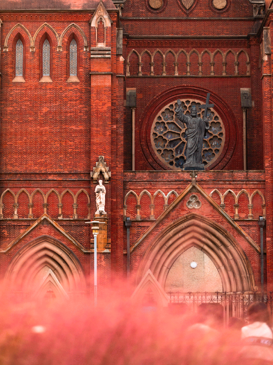 本季的流量黑马,不是精心栽种的秋日花卉,也不是秋色满园的公园绿地,而是地铁站边无心插柳的一大片绝美嫣红。