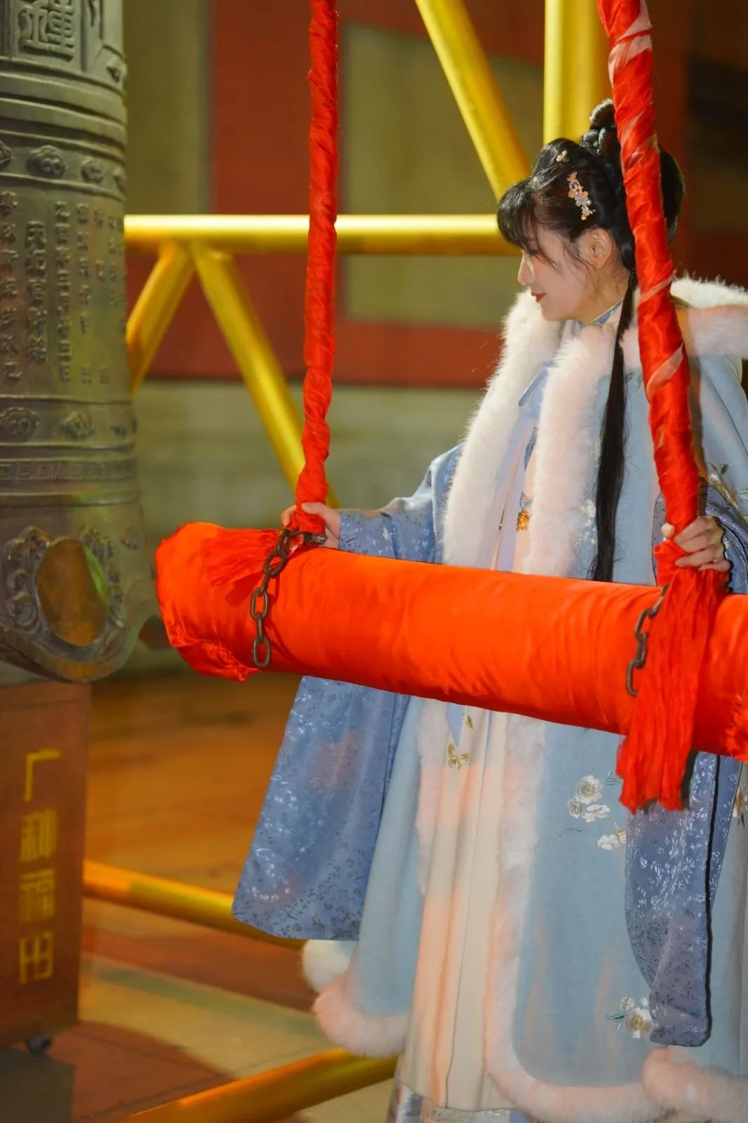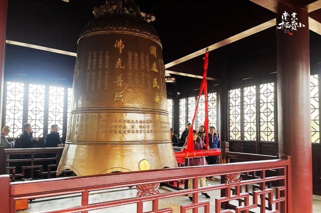游客们可以在栖霞古寺钟楼撞钟祈福