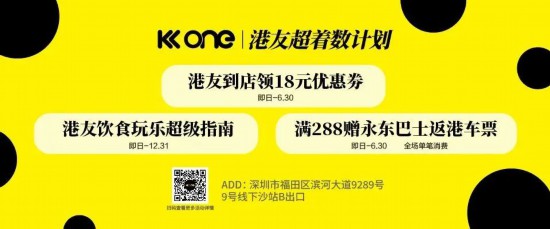 顾客持香港身份证明于 KK ONE 全场单笔消费满 288 元,即赠永东巴士深圳湾口岸返港车票*1 张,每人每日限参与 1 次,凭商家消费小票至@L1 客服中心核销领取,数量有限,赠完即止。