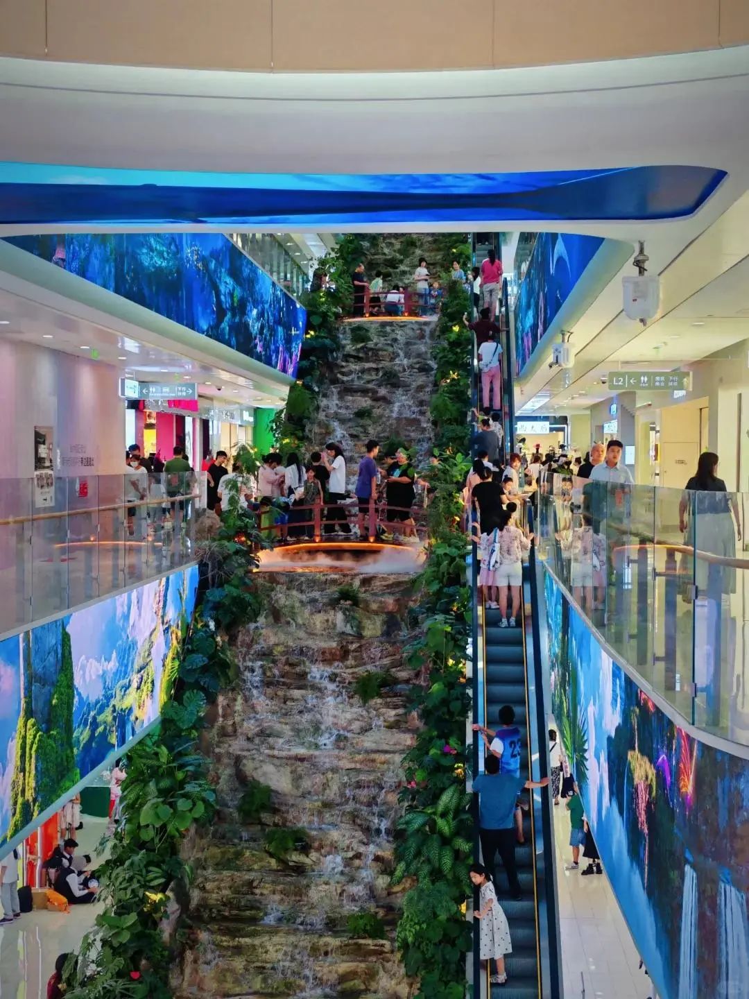 不仅有网红瀑布贯穿商场五层楼高,还可以坐上顶楼的摩天轮到达最高处,俯瞰城市的灯火阑珊。