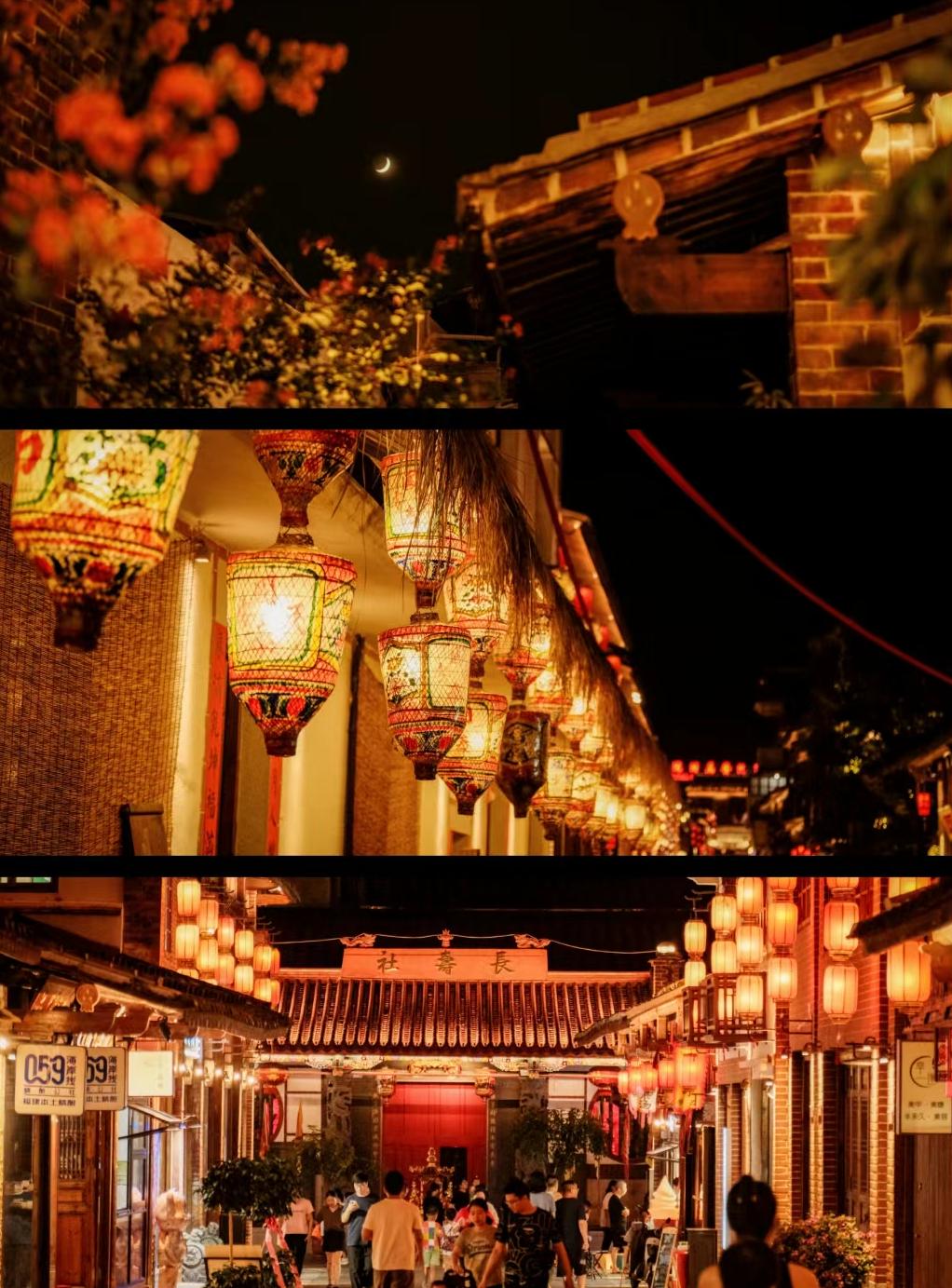 一片又一片的花灯,在屋檐下摇曳,一座又一座的院落,披上了暖黄的辉芒……有一种岁月与现实交织的奇妙感。