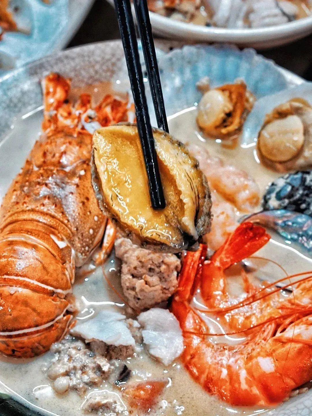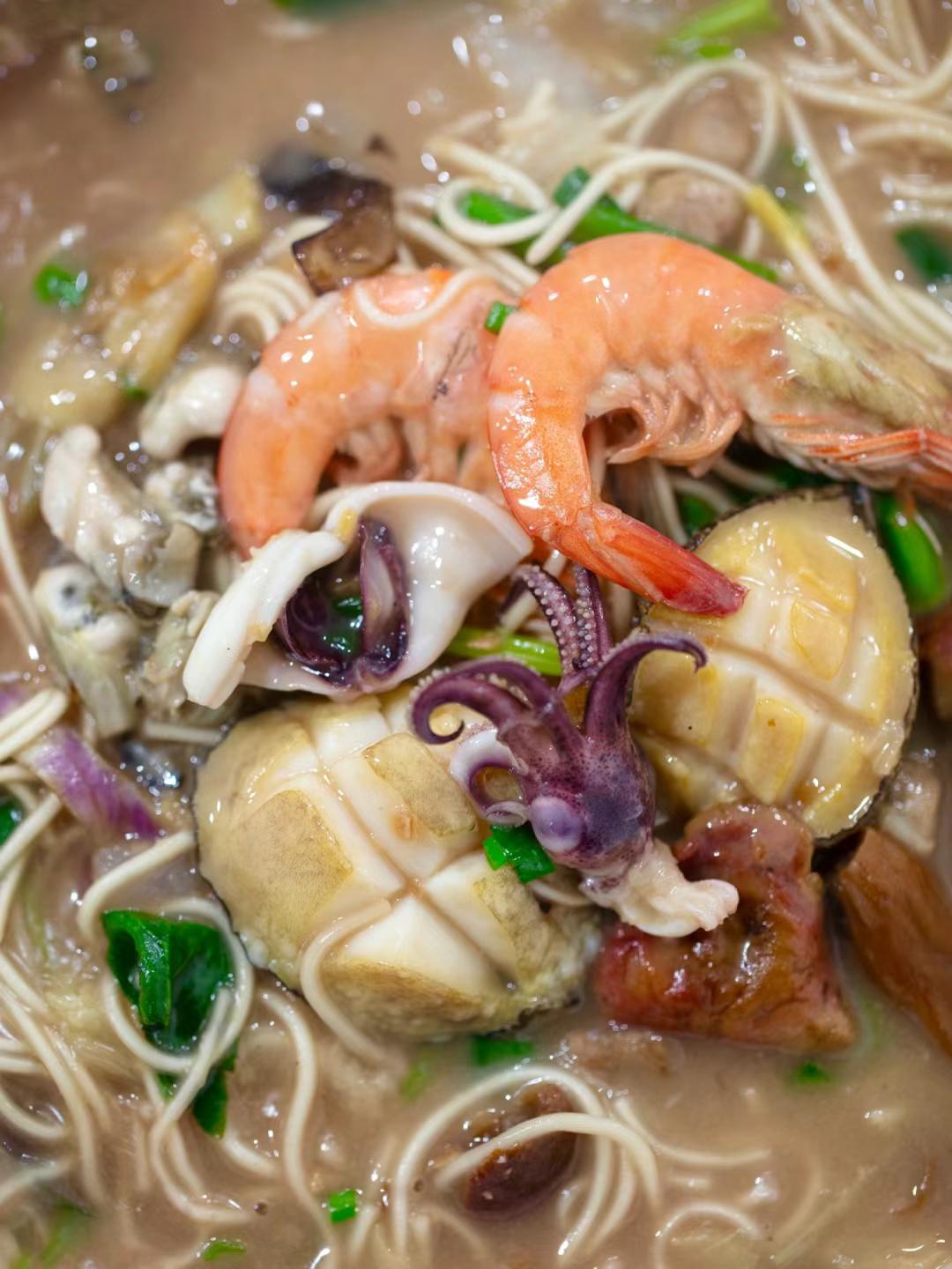 不止配料很丰盛,制作工艺也相当讲究,需要以文火熬煮上几小时,制出浓郁的高汤底,再倒入脆爽鲜甜的小海鲜,才够浓郁鲜香。