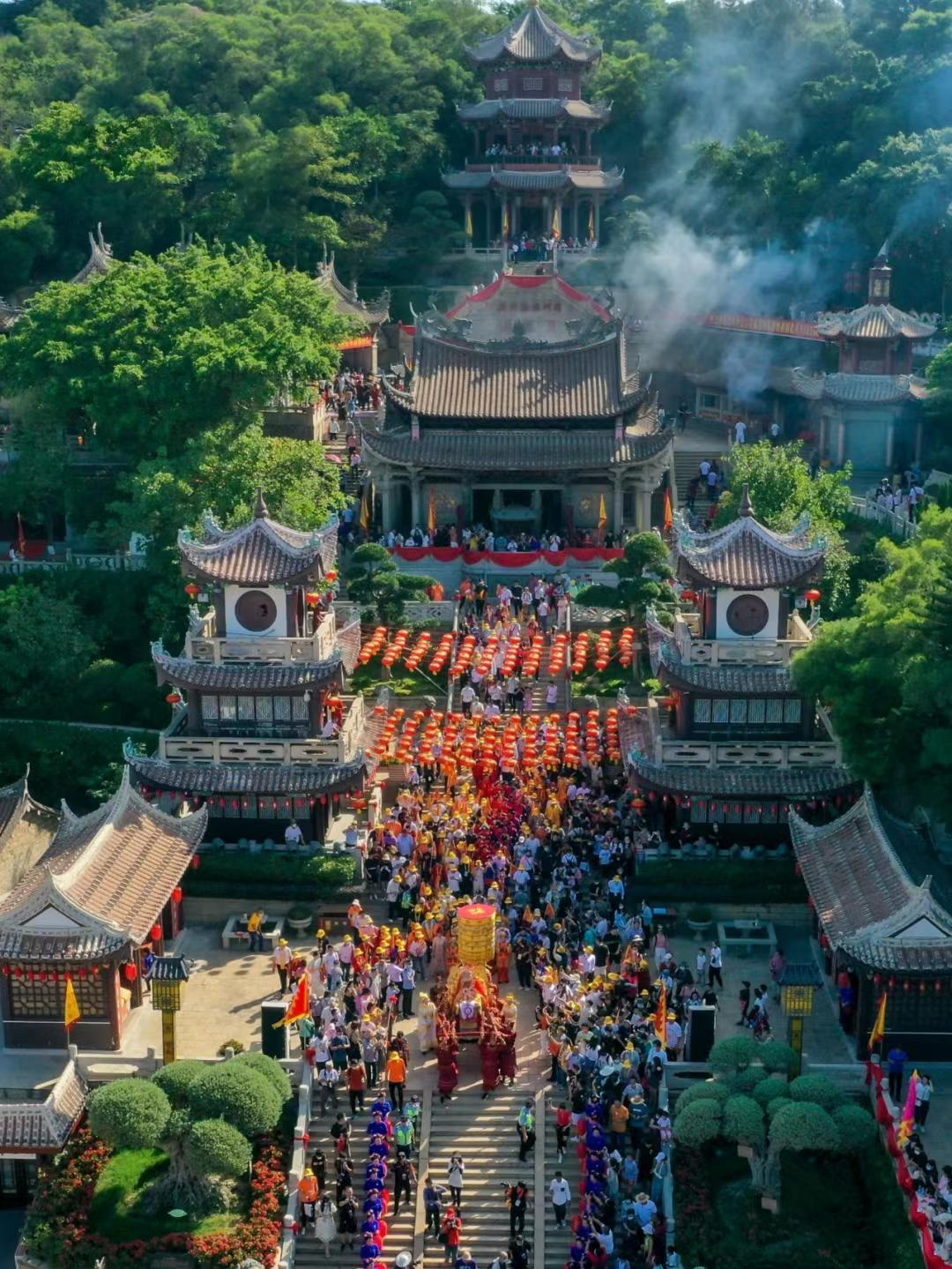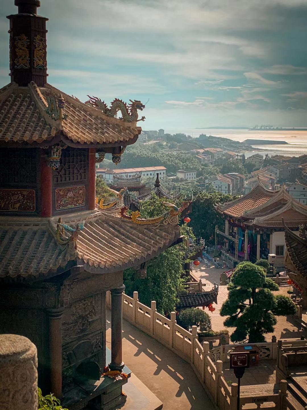 山在海上,庙在山间,这里可以俯瞰整座湄洲岛,抬眼是烟波浩渺,回望是亭台楼阁,香火缭绕,波光闪烁,更多了几分仙气。
