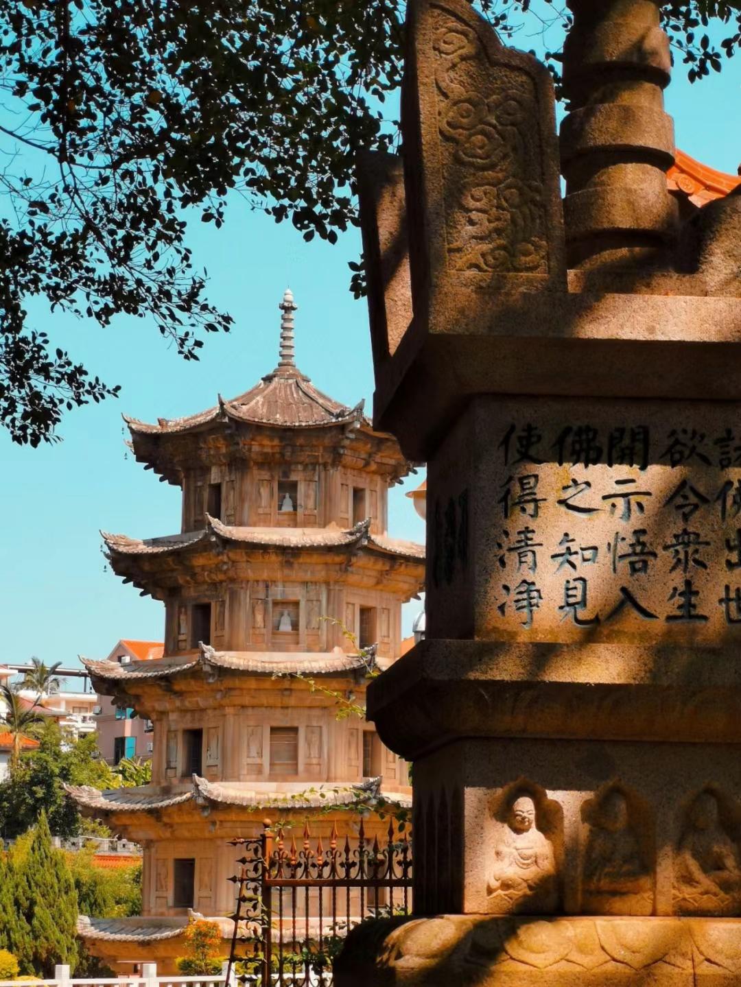 行过重重楼宇,穿过层层殿阁,会遇见一座释迦文佛塔,它比泉州的东西塔更悠久,你可以顺着塔下的小道,单数绕塔而行,相传能增福增慧,祈求平安。