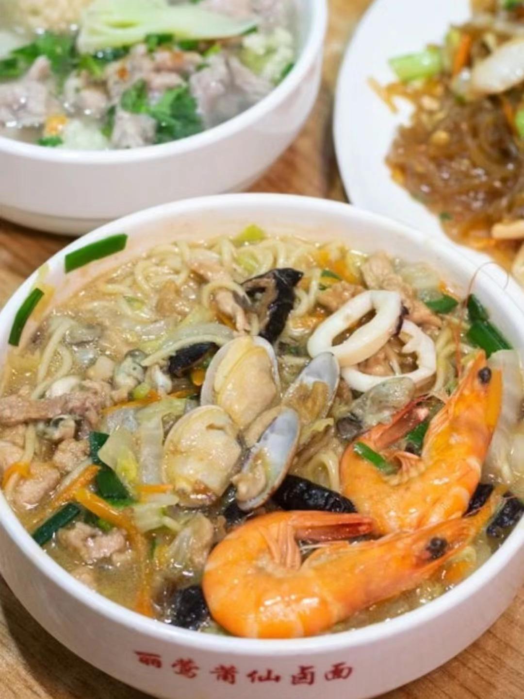 卤面听上去很简单,但对莆田人来说,一碗就盛进了半个大海的鲜美,各色的章鱼,鲍鱼,干贝,虾仁,海蛎,红菇……满满当当地铺在面上,看着就让人流口水。