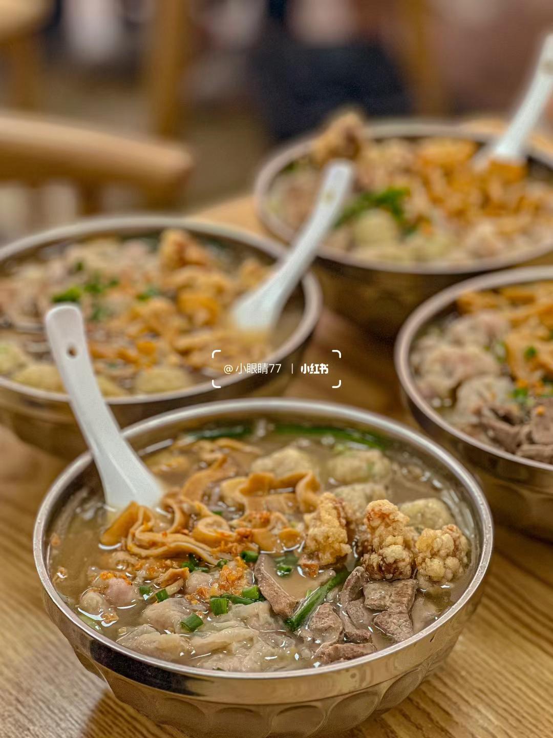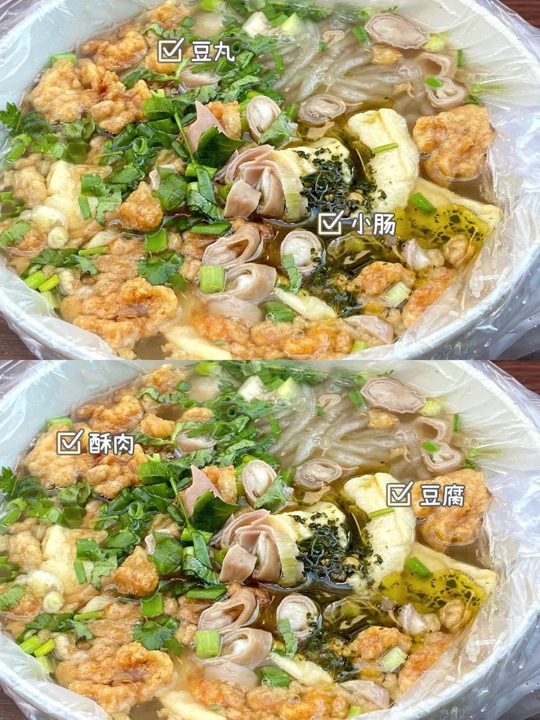 豆丸滑润,豆腐嫩滑,酥软鲜香,小肠爽脆,再配上晶莹剔透的粉丸,爽滑而又嚼劲,一碗暖暖地下肚,实在是舒服。